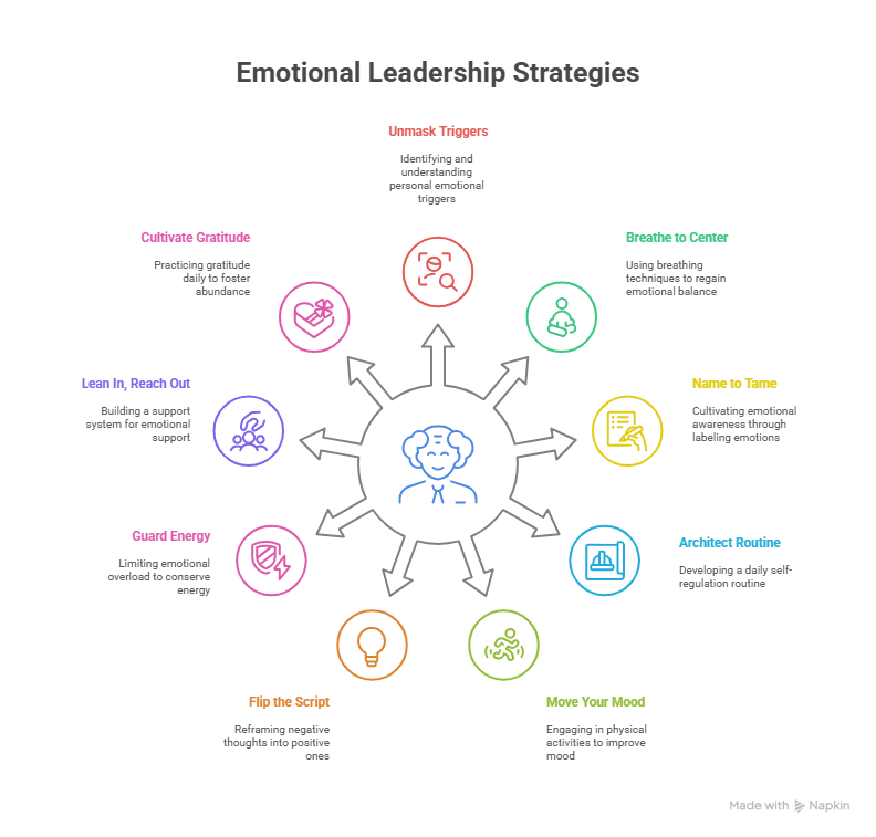 Architect Your Emotional Foundation: Develop a Daily Self-Regulation Routine: Just like you plan your business strategy, plan your emotional well-being. Morning meditation, journaling, or affirmations can build a strong emotional foundation that prepares you for the day's challenges. My non-negotiable morning routine includes 10 minutes of meditation and setting intentions for the day. It anchors me before the demands of business take over.